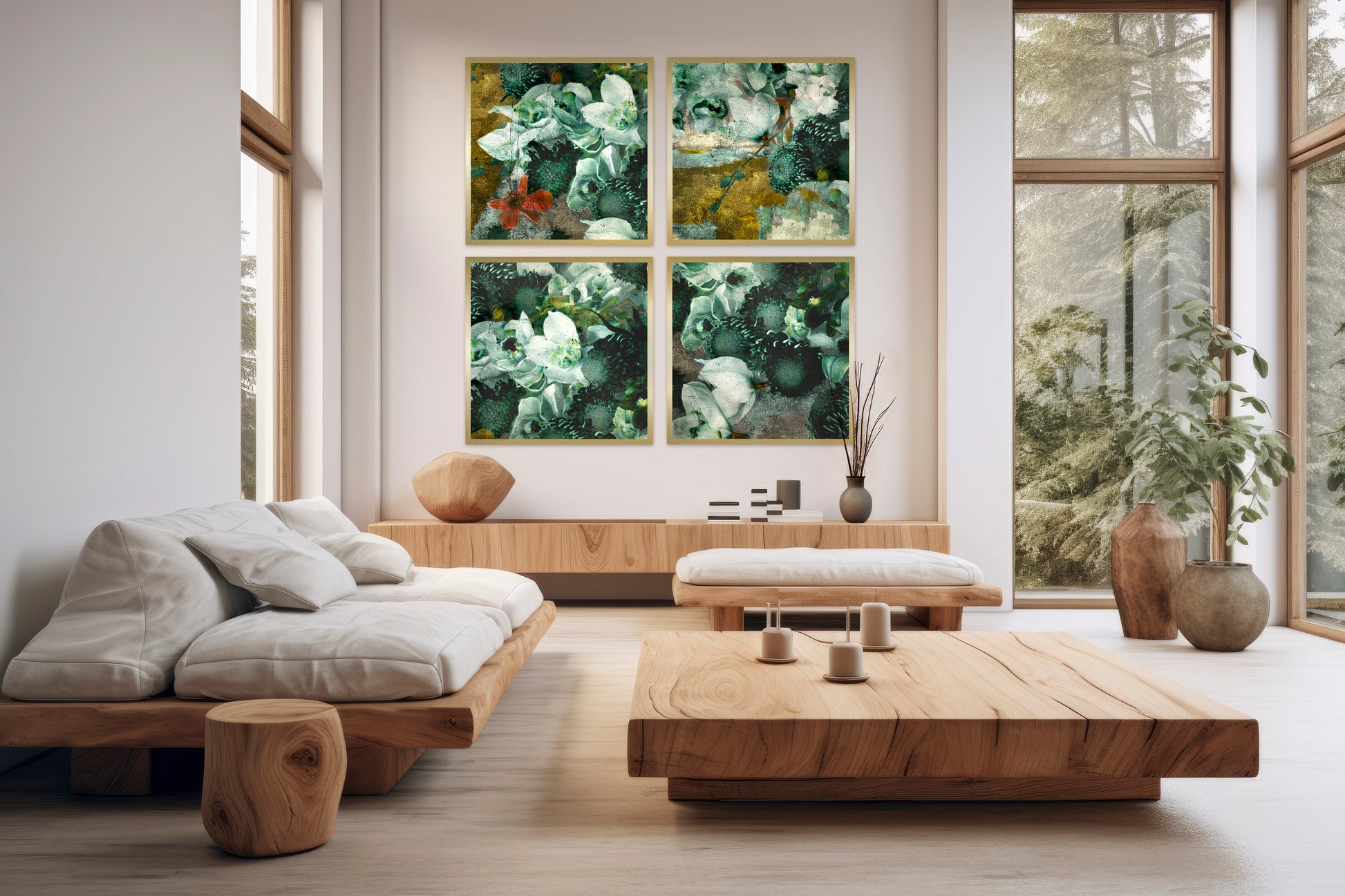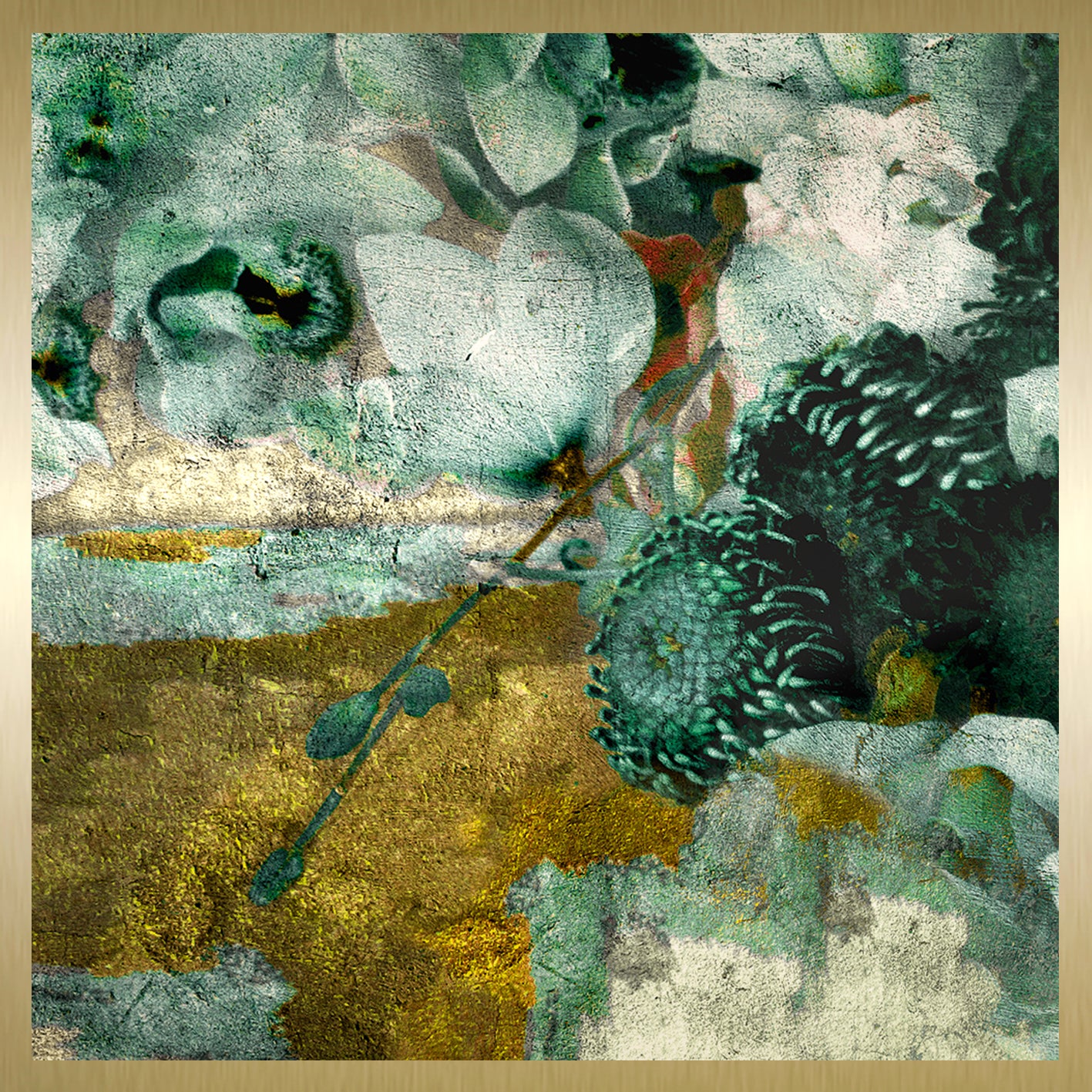 A concealed sub-frame is mounted on the back of the artwork, creating a floating effect approximately 20 mm from the wall.
