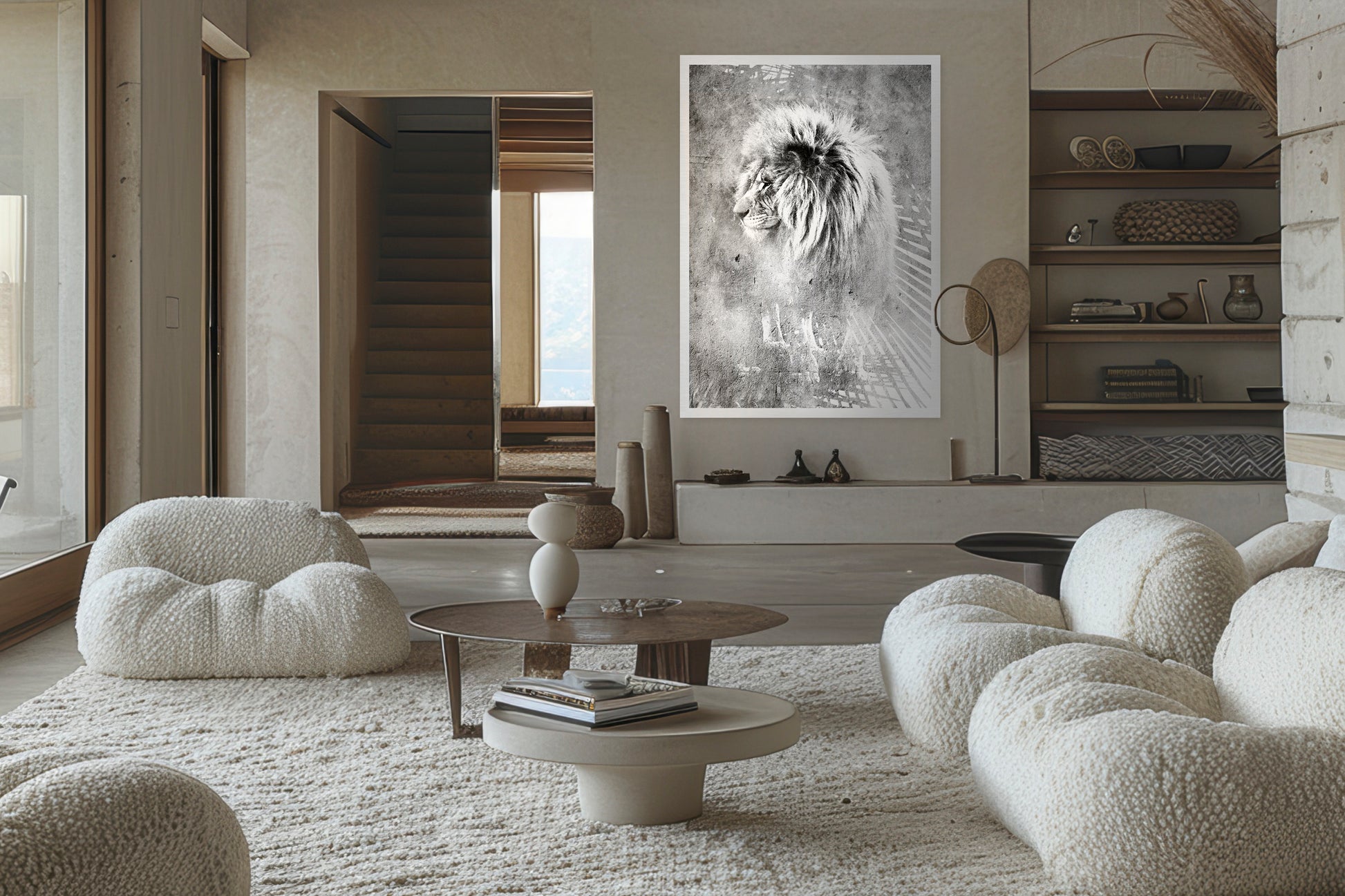 Stripped of colour, Mufasa becomes pure form and intention.