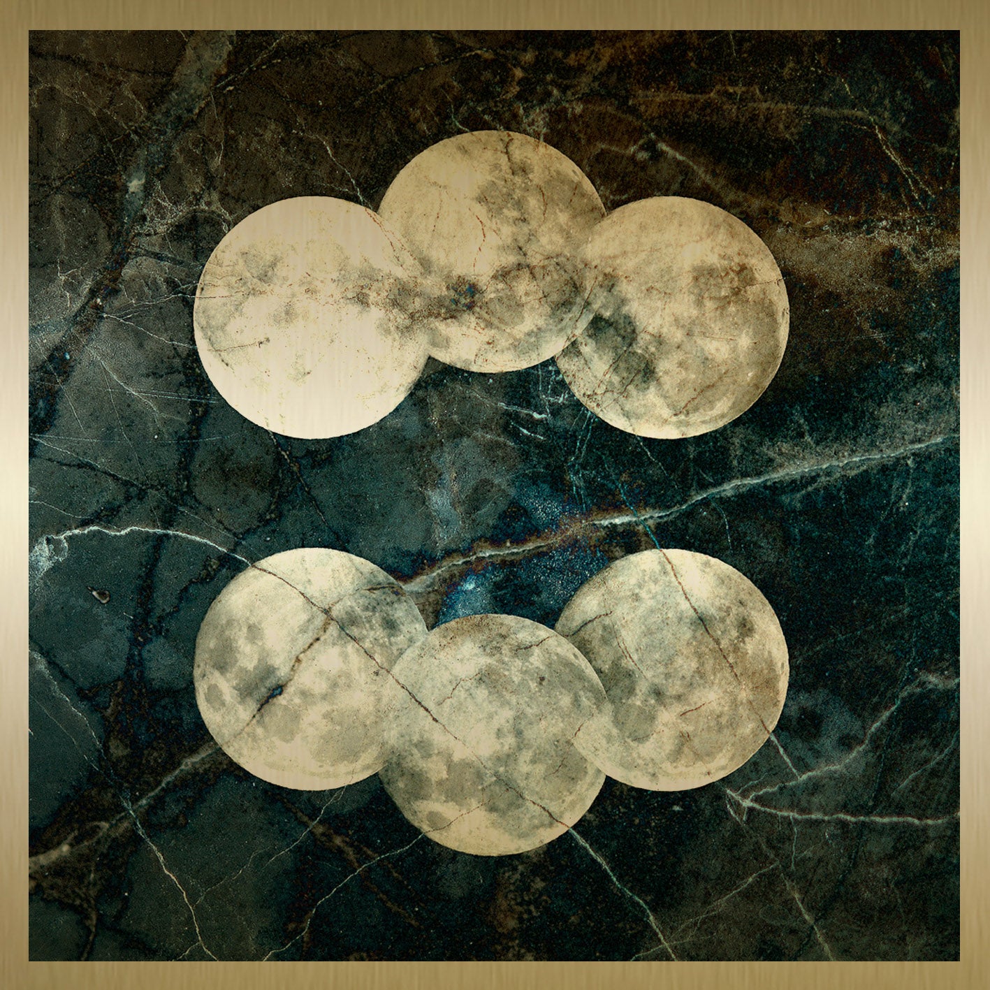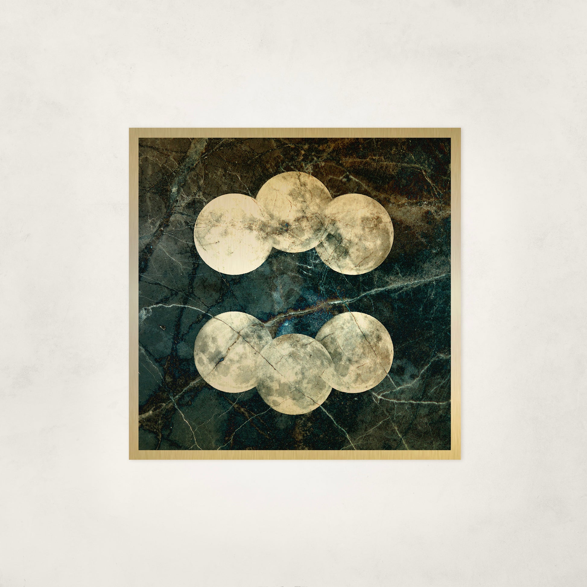 Printed on gold metal, the surface amplifies depth and contrast, giving each phase a sense of permanence and quiet gravity.