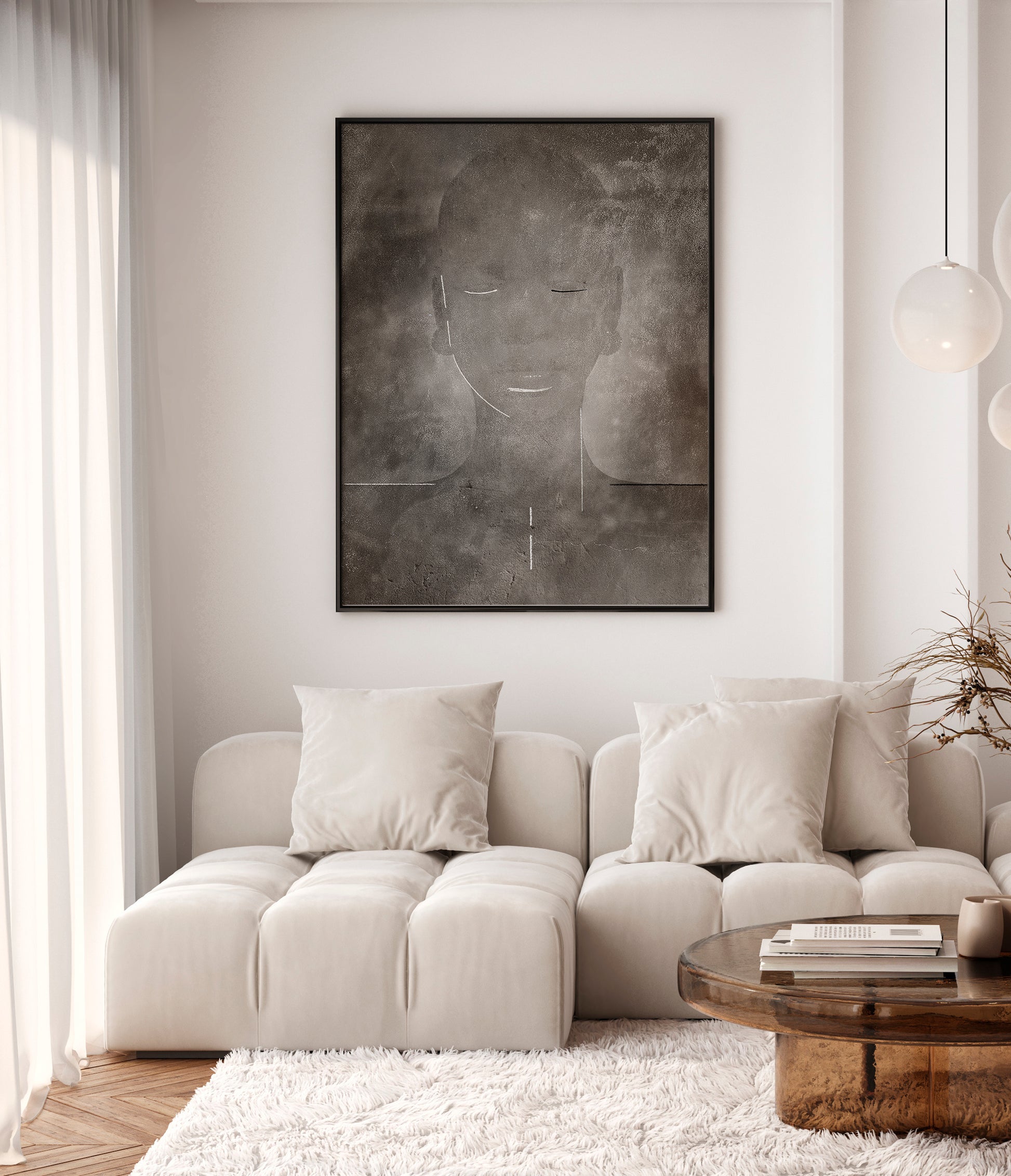This artwork brings calm focus, depth, and contemplative balance into a space.