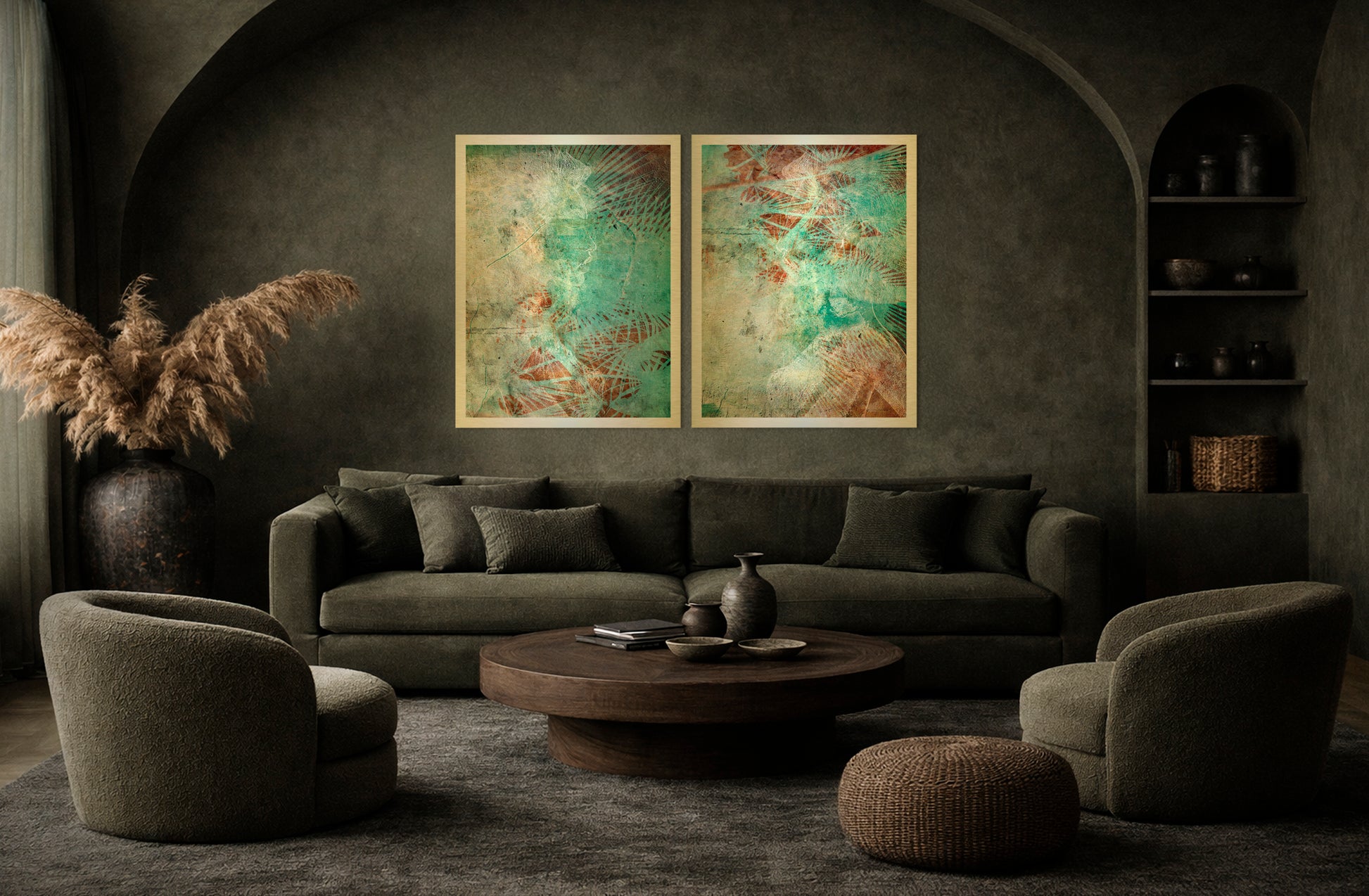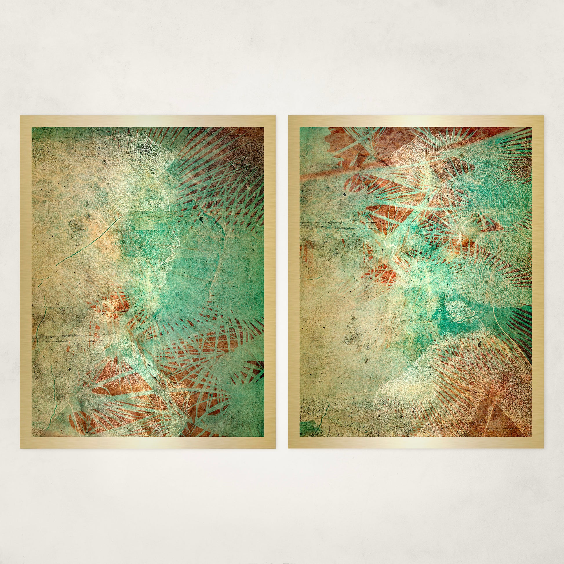 Printed as a pair on gold metal, the work gains rhythm and balance. The two pieces mirror and offset one another, creating a sense of flow, depth, and subtle tension.