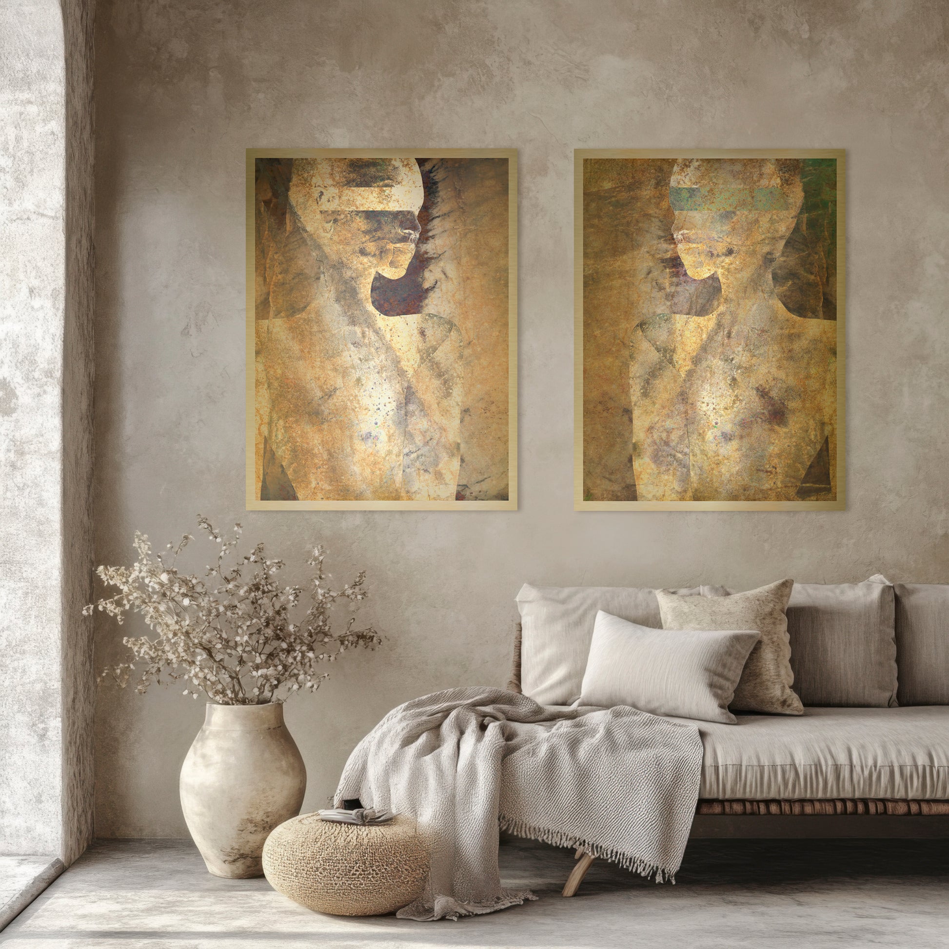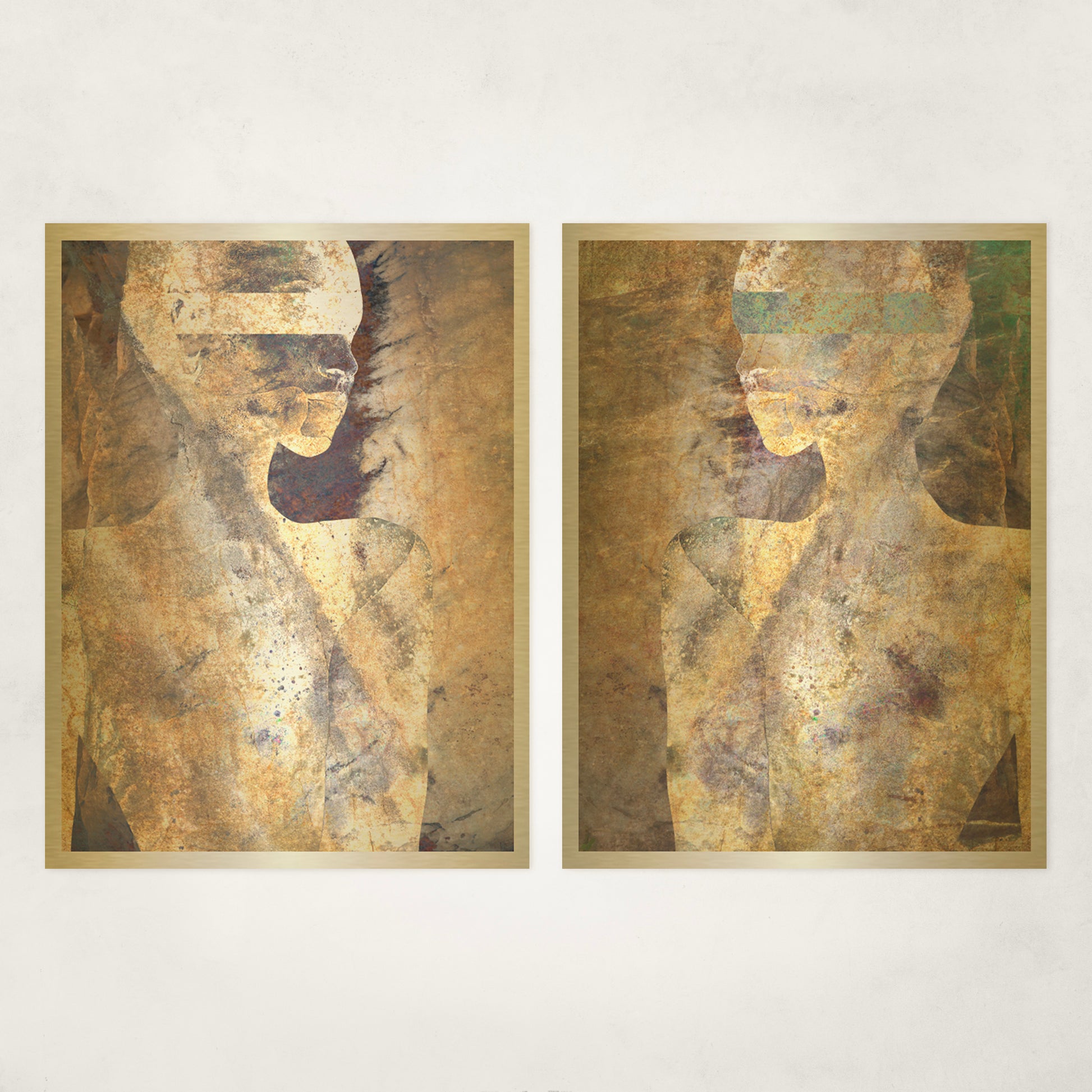 Printed on gold metal, the surface adds weight and permanence. The pair becomes architectural — anchors within a room, offering calm, order, and presence without demand.