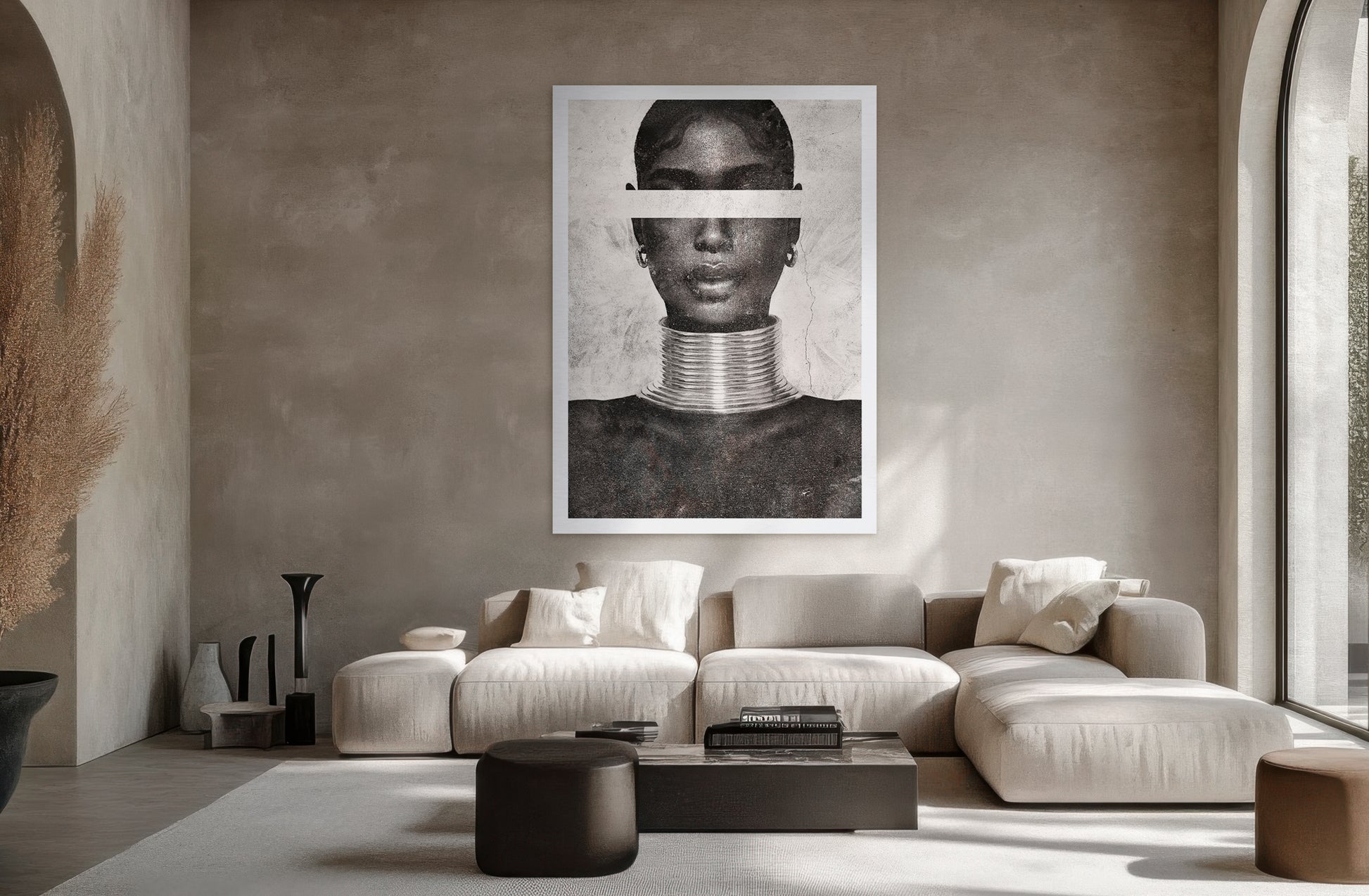 Stripped of colour and drawn closer, the portrait becomes introspective — silver tones heighten clarity, focus, and emotional depth.